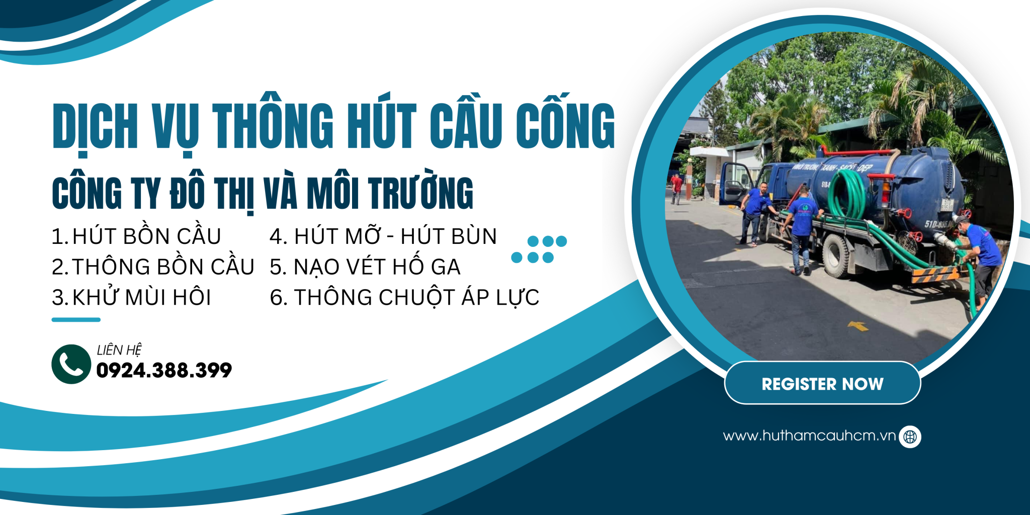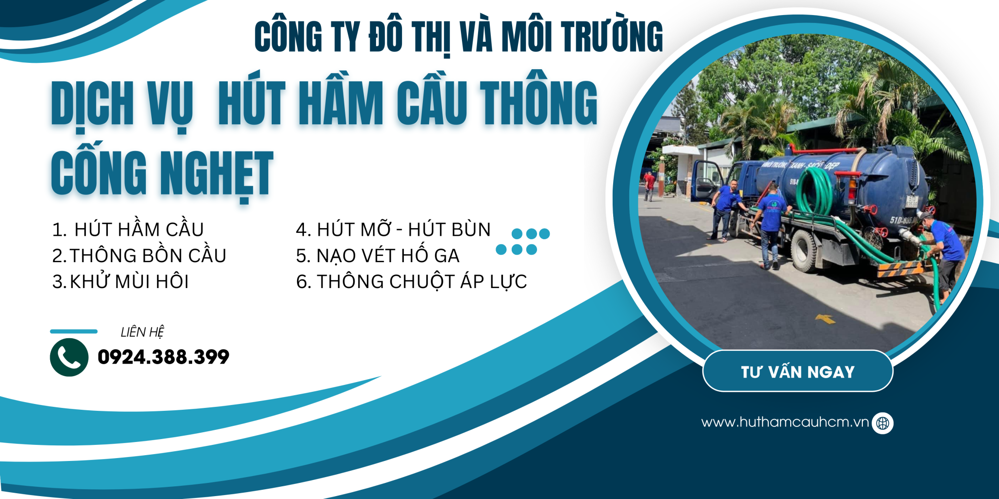 Hút bể phốt, hầm cầu đầy, tắc nghẹt. Xe chuyên dụng hiện đại, không gây mùi hôi.